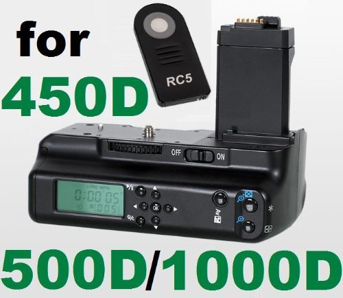 - NEW! Battery Grip w/ LCD Monitor & IR Remote Controller for Canon XS XSi T1i 500D 450D 1000D